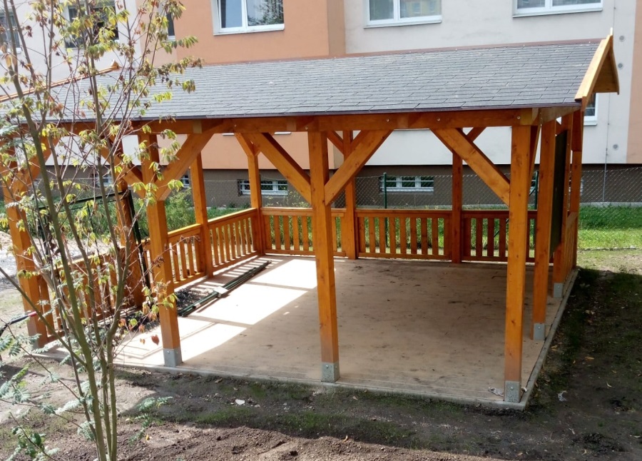 Unser Outdoor-Klassenzimmer ist die perfekte Lösung für das Lernen im Freien. Die Konstruktion besteht aus hochwertigen 12x12 cm großen Fichtenholzquadraten, die mit einer Beschichtung für Langlebigkeit und Wetterbeständigkeit behandelt sind. Das Klassenzimmer enthält auch ein praktisches Zeichenbrett, das Platz für kreativen Unterricht und Präsentationen bietet.