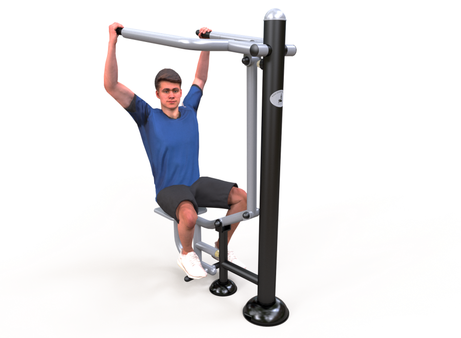 Fitnessgerät - Gerät zur Stärkung der oberen Gliedmaßen - dient zum Training, zur Stärkung und zum Aufbau der Muskelmasse des Oberkörpers: der Muskeln des Rückens, der Schultern, der Brust und der oberen Gliedmaßen.