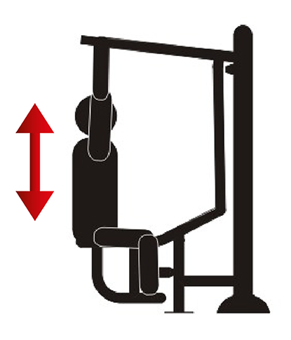 Wie wird trainiert - Setzen Sie sich mit geradem Rücken auf den Sitz und schauen Sie in Richtung des Gerätes. Fassen Sie beide Griffe fest an. Ziehen Sie die Griffe langsam nach unten, bis sich Ihre Arme auf Brusthöhe befinden. Bringen Sie die Griffe langsam wieder in ihre Ausgangsposition zurück. Atmen Sie ein, wenn sich die Hände nach unten bewegen, und atmen Sie aus, wenn sich die Hände nach oben bewegen. Führen Sie gleichmäßige und kontrollierte Bewegungen aus. Steigern Sie die Anzahl der Wiederholungen allmählich, wenn sich Ihre Fitness verbessert.