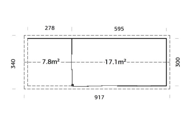 GartenhausAmanda 17,1 + 7,8 m2 sollte in jedem Garten vorhanden sein. Dank der großen Glasschiebetüren wird das Haus erhellt und man hat von dort aus eine schöne Aussicht. Fügen Sie ein paar Möbel hinzu und schon haben Sie einen gemütlichen Ort, an dem Sie sich bei jedem Wetter entspannen und erholen können.