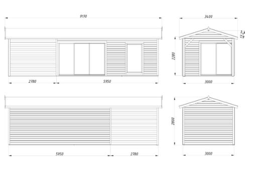 Gartenhaus Amanda 17,1 + 7,8 m2 mit Schiebetüren Gartenhaus Amanda 17,1 + 7,8 m2 mit Schiebetüren