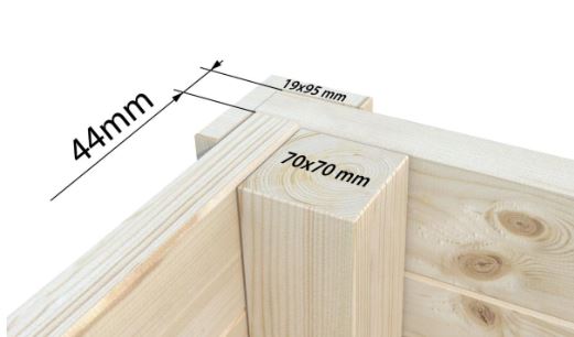 Das Haus besteht aus hochwertigem Material und ist dank der starken Holz Wände mit einer Stärke von 44mm für ein jahrelanges wartungsfreies Leben bestimmt.