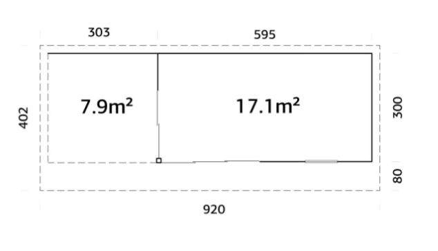 Gartenhaus Andrea 17,1 + 7,9 m2 mit Schiebetüren mit Doppelglas 895 x 300 cm Dicke 44 mm
