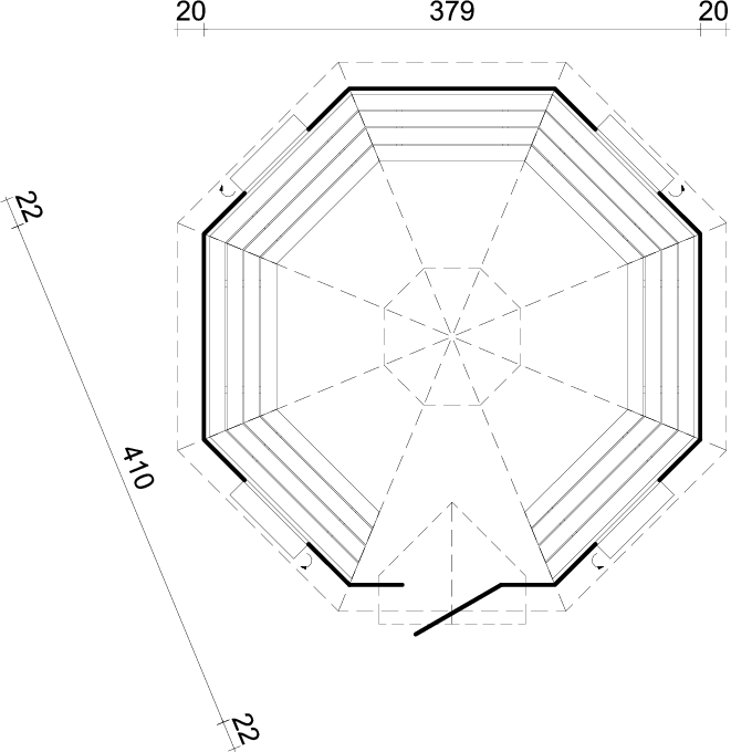 GARTENHAUS Eva 11,4 m2 (Durchmesser 379 cm) 44mm