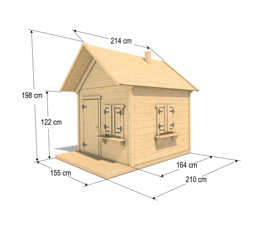 Das Haus wird als Bausatz verkauft, den jeder Heimwerker in ein paar Stunden zusammenbauen kann. Wir empfehlen, das Dach mit Dachpappe zu schützen, die Sie in den entsprechenden Produkten finden können.