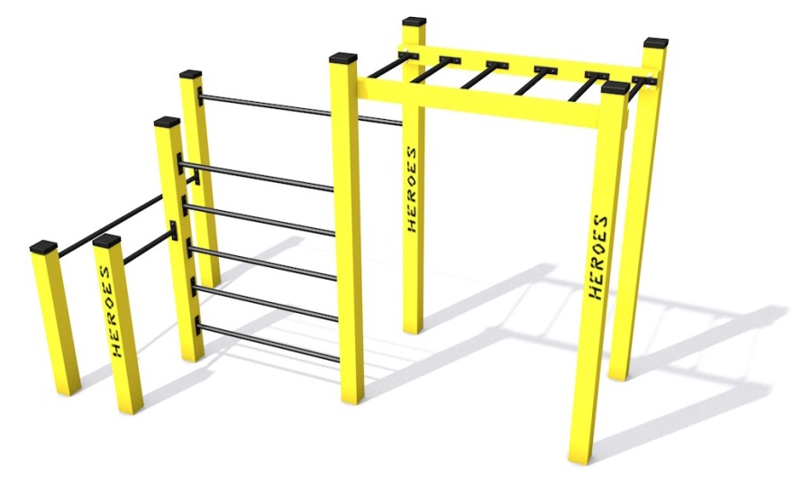 Das Monkey HEROES - Cubs 2 Workout-Fitness-Set wurde entwickelt, um Workout-Übungen mit dem eigenen Körpergewicht durchzuführen. Es besteht aus massiven Balken und Rohren, die eine kompakte Einheit bilden. Das Set ist für Gemeinden, Parks und Schulen geeignet und hilft, die körperliche Aktivität von Kindern, Jugendlichen und Erwachsenen zu fördern.