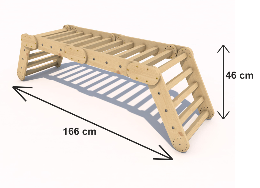 Das Pikler-Dreieck besteht in der Regel aus drei oder mehr miteinander verbundenen Holzteilen, die ein Dreieck oder eine andere geometrische Form bilden. Ein Kind kann diese Struktur zum Klettern, Krabbeln und Erkunden seiner Fähigkeiten nutzen. Der Grundgedanke des Pickler-Dreiecks besteht darin, den Kindern die Möglichkeit zu geben, ihre motorischen Fähigkeiten und ihre Koordination zu entwickeln, ohne dass ein Erwachsener zu sehr eingreift. Das Kind hat die Freiheit zu entscheiden, wie und wann es das Dreieck benutzen will, was seine Unabhängigkeit und Selbstständigkeit fördert.