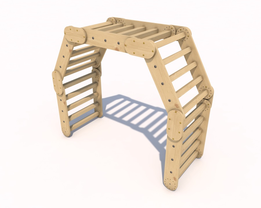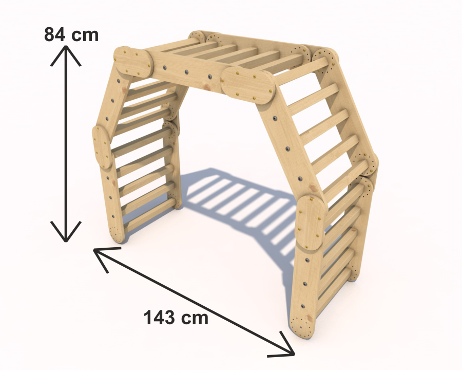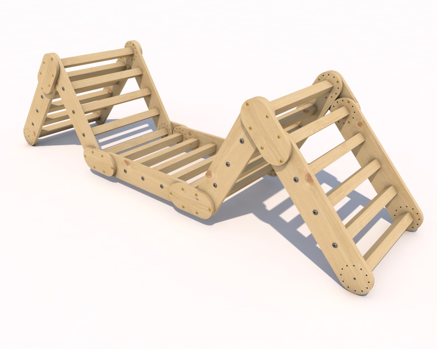 Das Pikler-Dreieck besteht in der Regel aus drei oder mehr miteinander verbundenen Holzteilen, die ein Dreieck oder eine andere geometrische Form bilden. Ein Kind kann diese Struktur zum Klettern, Krabbeln und Erkunden seiner Fähigkeiten nutzen. Der Grundgedanke des Pickler-Dreiecks besteht darin, den Kindern die Möglichkeit zu geben, ihre motorischen Fähigkeiten und ihre Koordination zu entwickeln, ohne dass ein Erwachsener zu sehr eingreift. Das Kind hat die Freiheit zu entscheiden, wie und wann es das Dreieck benutzen will, was seine Unabhängigkeit und Selbstständigkeit fördert.